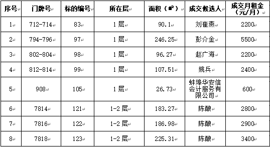 喜迎門小區(qū)部分商鋪公開競價招租工作已經結束,成交候選人已經確定?,F將競租結果公示如下: