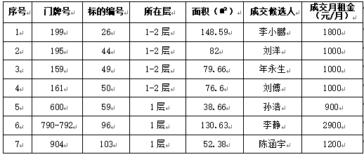 喜迎門小區(qū)部分商鋪公開競價招租工作已經(jīng)結束,成交候選人已經(jīng)確定?,F(xiàn)將競租結果公示如下: