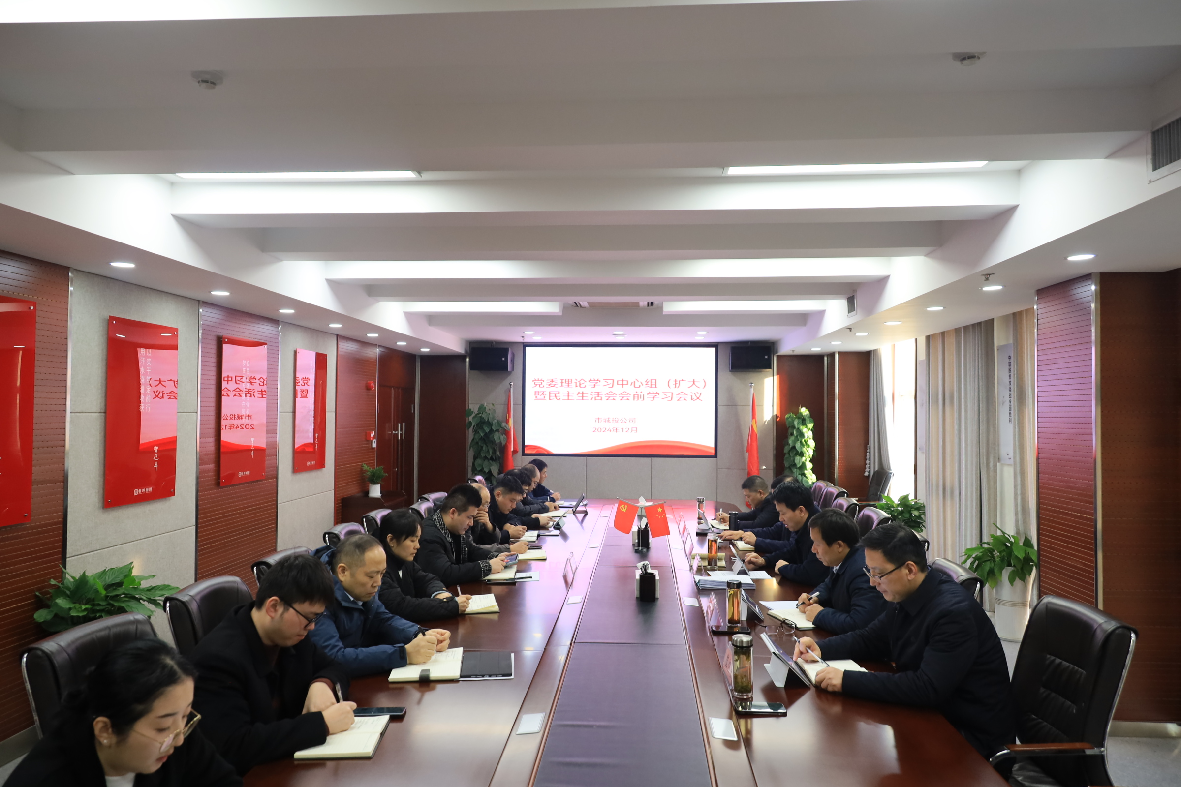近日,市城投公司黨委召開理論學習中心組(擴大)暨民主生活會會前學習會議。黨委書記、董事長沈明仕主持會議并講話,黨委班子全體成員參加會議,各黨支部書記、部分黨支部委員及相關部門負責同志列席會議。 會議集中學習了中共中央政治局民主生活會會議及中央經(jīng)濟工作會議精神...